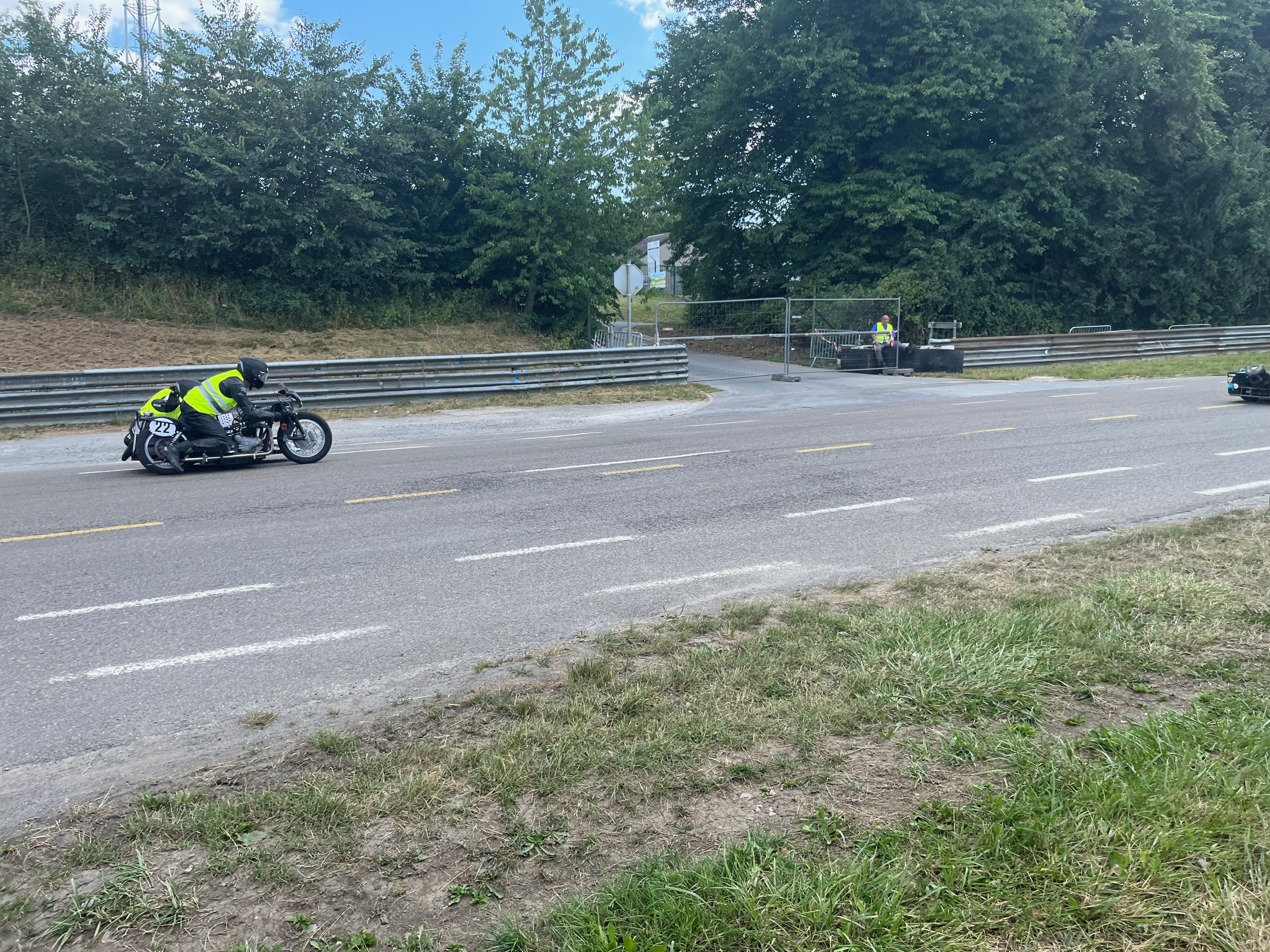 Donderdag was een rustige dag, waarop we ons hebben aangemeld bij de organisatie en het zijspan hebben laten keuren. Ook hebben we verschillende rondes over het (straten)circuit gereden met de bus, om dit alvast een beetje te leren kennen. 5050 meter, 21 bochten (waarvan twee haaks en een haarspeldbocht), veel hoogteverschillen en een groene omgeving maken dit een fantastisch circuit om op te rijden, voor zowel rijder als bakkenist. Het publiek kan plaatsnemen langs de start (op een tribune of aan de baan), in de chicane, of op verschillende plekken langs het circuit. Voeg daar kraampjes met koffie, ijs, ander eten, motoronderdelen en prullaria, een café, een feesttent en een zonnetje aan toe en het weekend is geslaagd!